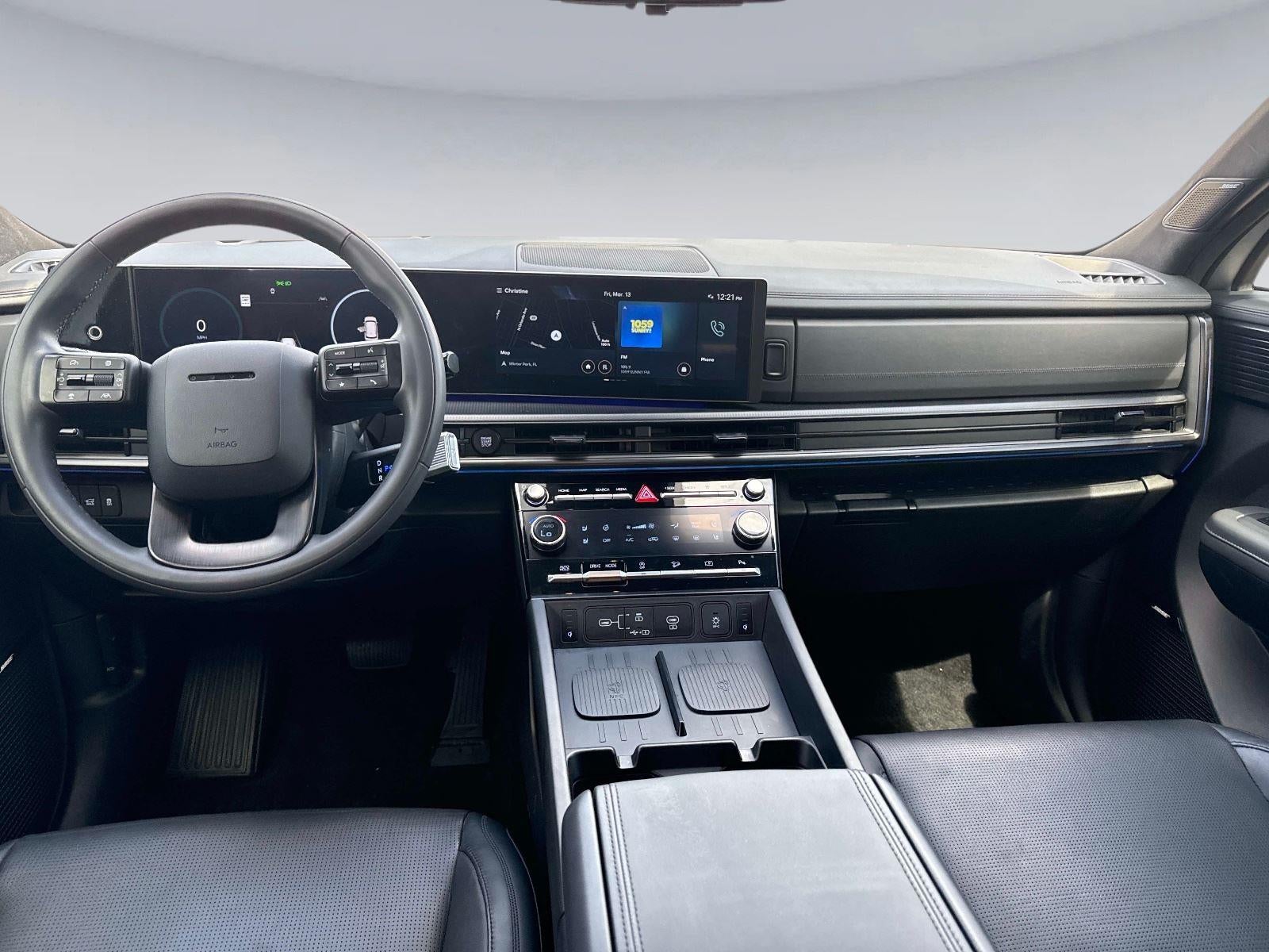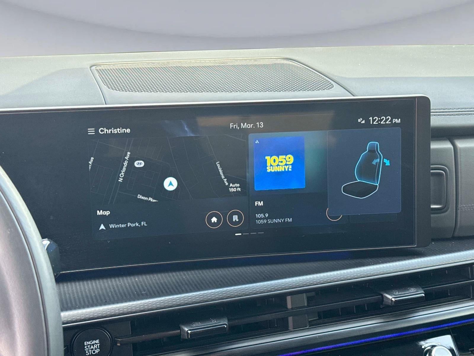 - Radio: AM/FM/HD Bose Premium Audio System -inc: 12 speakers including subwoofer, external amplifier, 12.3" wide touchscreen, Apple CarPlay and Android Auto, Bluetooth® hands-free w/wireless audio streaming, dynamic voice recognition, USB connectivity, SiriusXM, Blue Link connected car system, navigation system including traffic flow w/incident data via HD Radio (HERE) and rear seat quiet mode