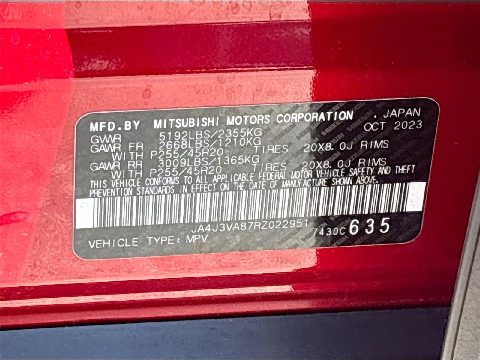 - Front Tire Size: P255/45WR20